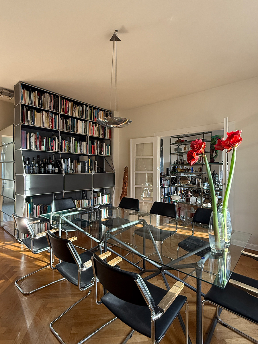 Die Fotos 3 bis 7 zeigen den vielfältigen Gebrauchszusammenhang des bald 40-jährigen Möbels im Zusammenwirken mit Freischwingern, die die Firma Mauser zwischen 1955 und 1965 herstellte.