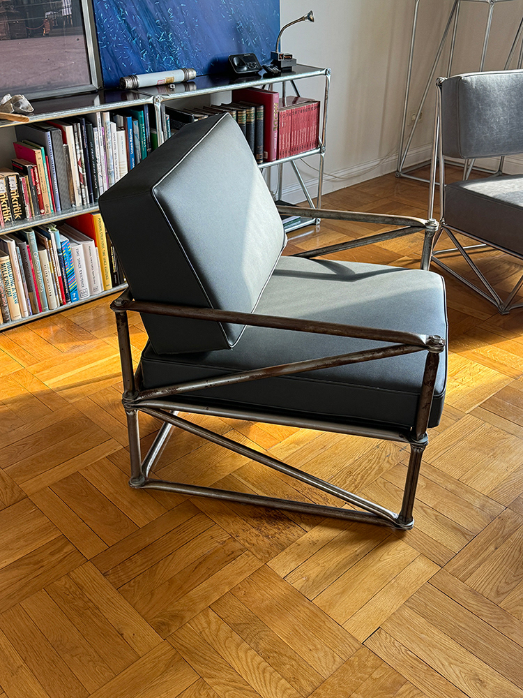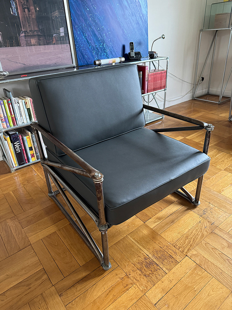 Passend zum Daybed (1991/01) entstand dieser Sessel, der weniger tief als das Daybed ausfiel. Er wurde drei Jahrzehnte lang eigentlich nicht fertiggestellt (Foto 1).