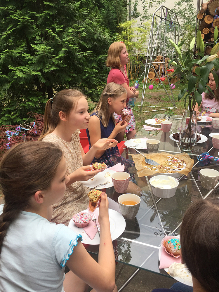 Das Bild 5 weist die Nutzung eines Tisches mit Einscheibensicherheitsglasplatte auch während eines Kindergeburtstags nach.