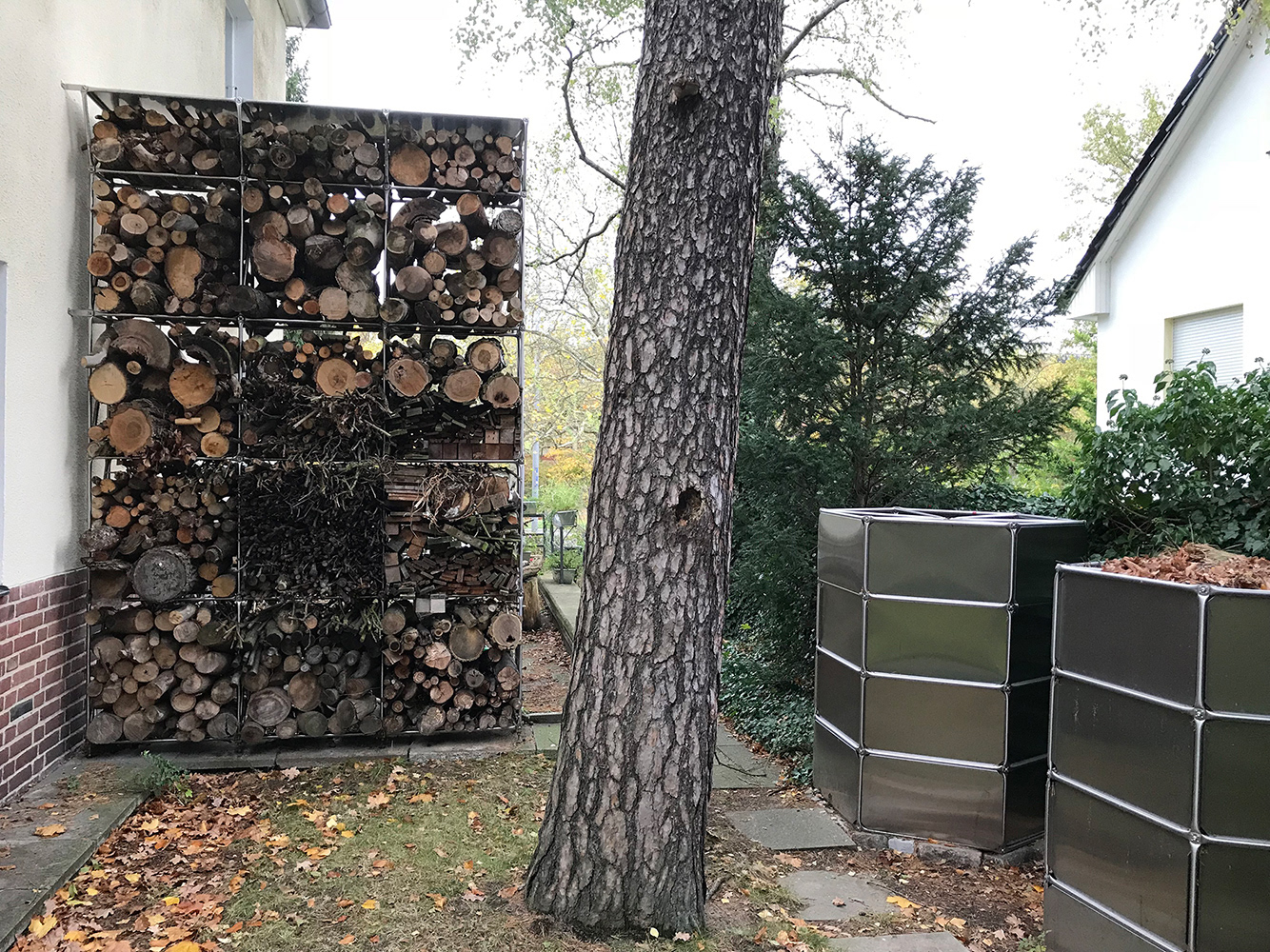Die überragende Statik des Systems 180 weist auch das Holzlagergestell nach, das auf einer Schmalseite an der Hauswand in der Berliner Heerstraße befestigt ist.