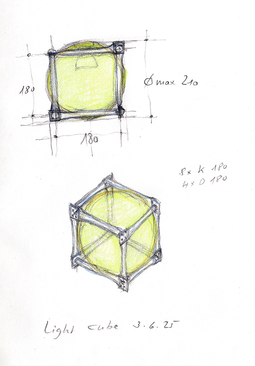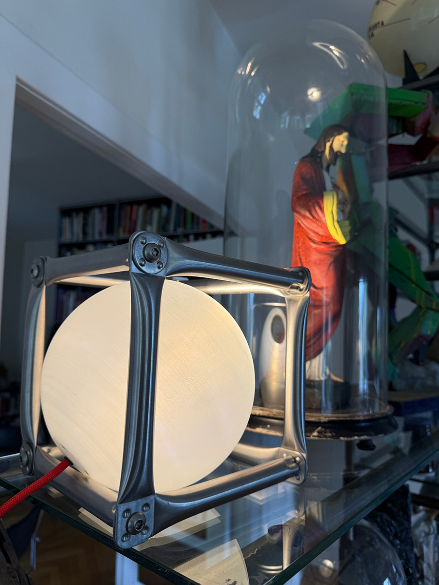 Angestachelt durch ein leuchtendes Element für USM Haller, gefunden bei Dezeen am 28. Mai 2025 und angeregt durch die die Leuchte aus mundgeblasenem Glas von Lee Brom , schlagen wir eine Leuchte im System 180® vor.